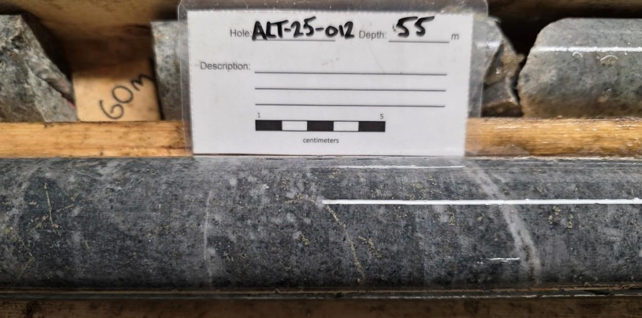 Partial gold analysis of the first batch has been reported (see News Release dated November 17, 2025) with entire rushed batch now completed for gold analysis only; multi-element analysis results remain pending. Assay highlights of diamond drill hole ALT-25-012 pertaining to this News Release are found in Table 2. Due to prolonged assay laboratory delays, the Company requested rush analysis of the sample batch containing potentially high-grade gold from drill hole ALT-25-012.